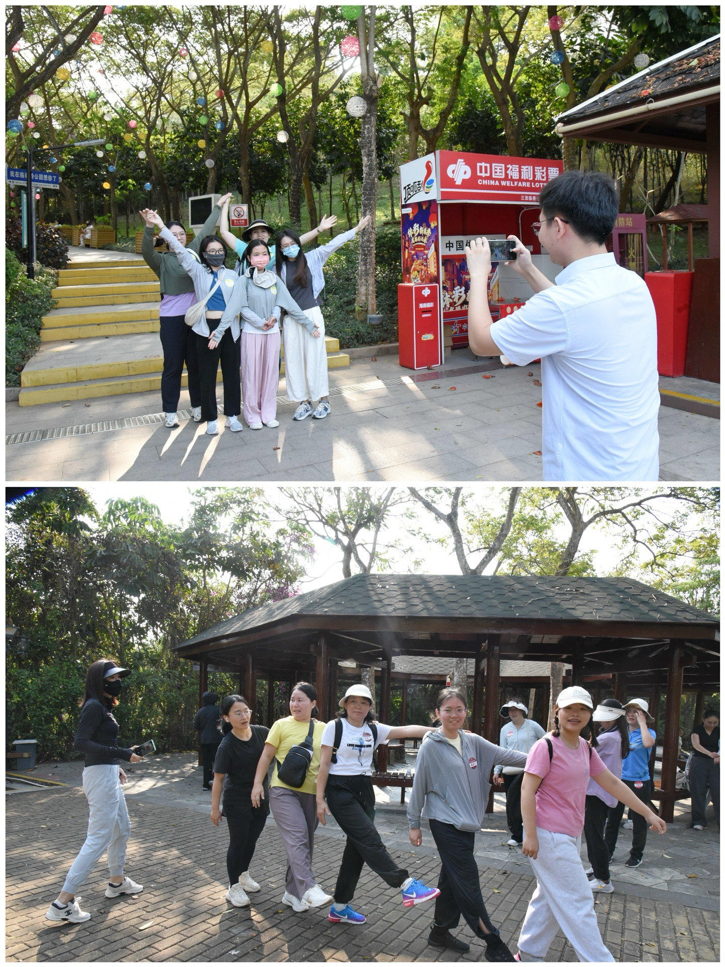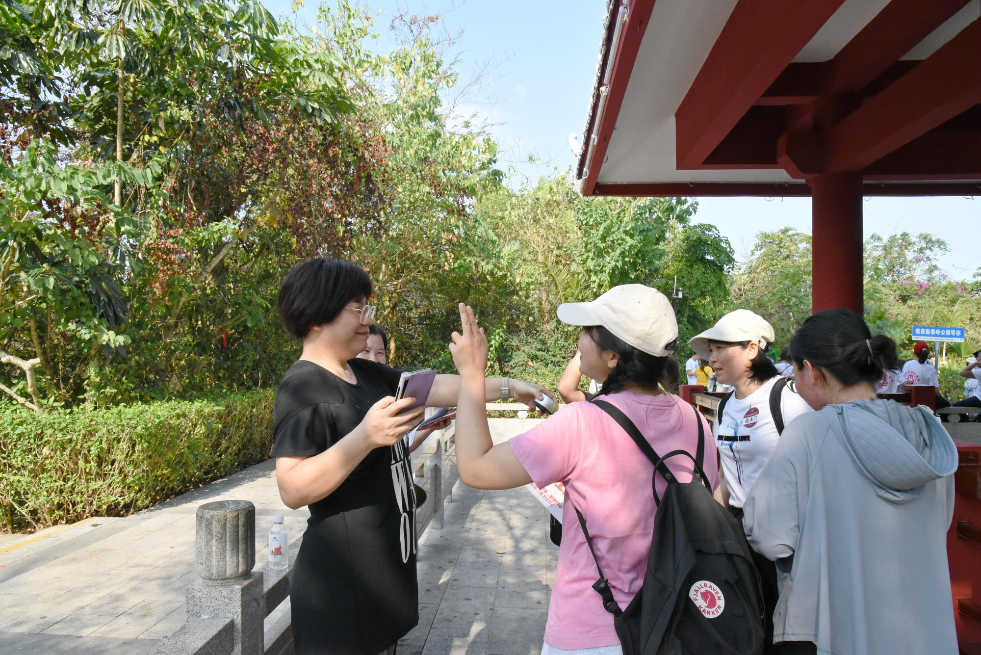 登山途中,各小組要根據(jù)任務(wù)卡內(nèi)容,在指定地點(diǎn)按照規(guī)定動(dòng)作擺出相應(yīng)姿勢(shì)并拍攝合照。“五人手拉手比‘星’”“橫排側(cè)身齊步走”無論是簡(jiǎn)單的動(dòng)作還是有難度的姿勢(shì),各種各樣的造型大家都能輕松駕馭,紛紛在入口處、茶亭和瞭望塔留下趣味合照,很快闖關(guān)成功,迎接下一步挑戰(zhàn)。