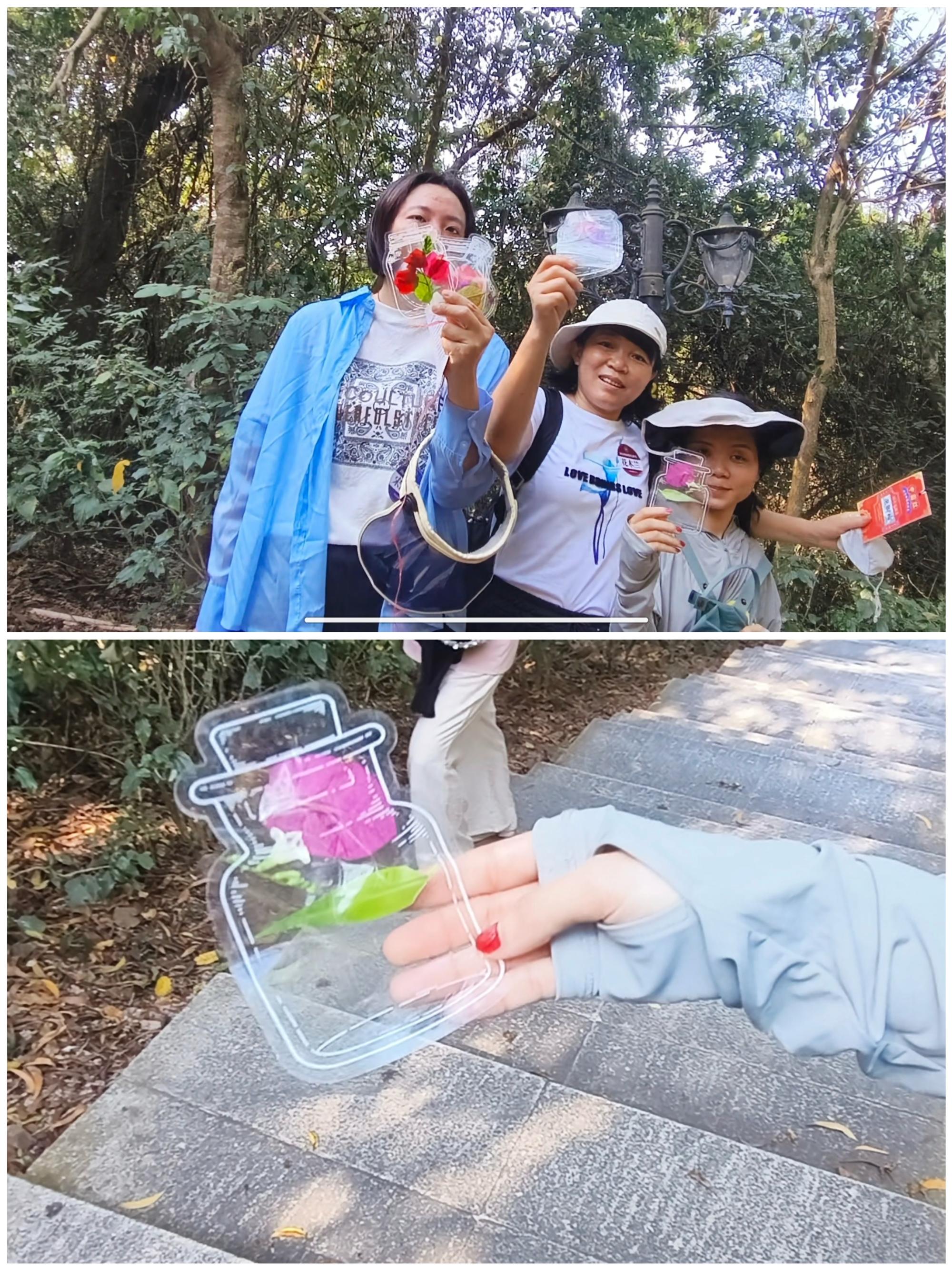 登山賞景的同時(shí),各小組每人還要收集3種以上不同花草,制成壓花書簽。一路上,大家看到地上散落的花草紛紛主動(dòng)撿起,為制作書簽準(zhǔn)備好材料。“壓花書簽,是一種非常流行的手工藝術(shù)體驗(yàn),制作過程簡(jiǎn)單,又別有意趣。”收集到的花草經(jīng)過大家的構(gòu)思、設(shè)計(jì)和搭配,被制作成了一枚枚精美的書簽,大家紛紛表示,在三八婦女節(jié)收獲一份自己親手制作的禮物很有意義。