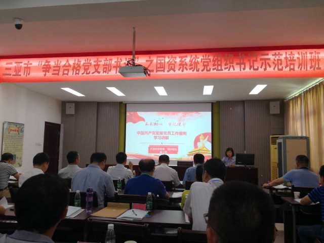 2018年5月15日上午,由市委組織部組織的三亞市“爭(zhēng)當(dāng)合格黨支部書記”之國(guó)資系統(tǒng)黨組織書記示范培訓(xùn)班在黨校正式開班,培訓(xùn)為期3天,國(guó)資委領(lǐng)導(dǎo)全程跟班,海南天涯水業(yè)(集團(tuán))公司16名黨組織書記全部參訓(xùn)并認(rèn)真學(xué)完了每一節(jié)課。