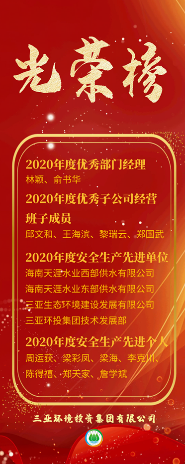 公司取得的優(yōu)異成績,離不開我們?nèi)w環(huán)投人的共同努力,是我們?nèi)旧舷氯翰呷毫?,勠力同心,奮楫篤行的成果。在我們環(huán)投人的隊(duì)伍中,涌現(xiàn)出了一大批管理科學(xué)、敢于創(chuàng)新的先進(jìn)集體和盡職盡責(zé)、勇于奉獻(xiàn)的先進(jìn)分子。為了鼓勵先進(jìn),樹立典型,激發(fā)全體職工干部的奮斗熱情,公司決定對2020年度涌現(xiàn)出的先進(jìn)集體和先進(jìn)個人予以嘉獎!