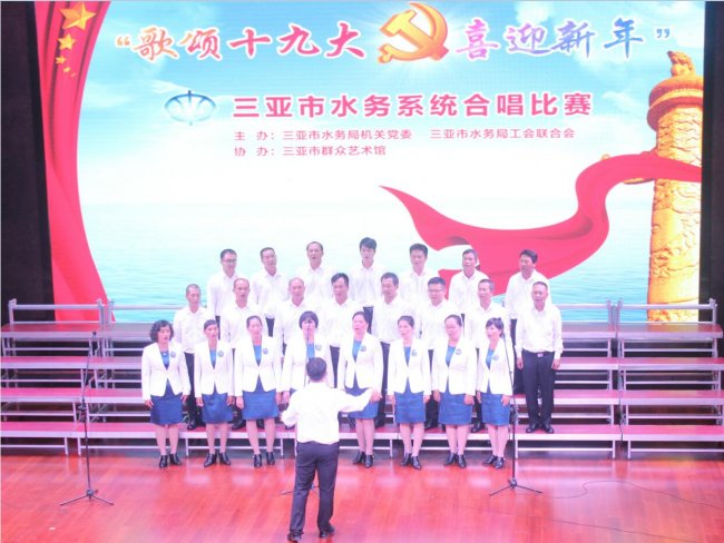 2017年12月27日,我司參加了在市群藝館舉辦的三亞市水務(wù)系統(tǒng)“歌頌十九大 喜迎新年”合唱比賽。經(jīng)過激烈角逐和專家評分,我司合唱團(tuán)演唱的歌曲《祖國不會忘記》和《在燦爛的陽光下》以積極向上的精神風(fēng)貌和富有極強(qiáng)感染力的藝術(shù)效果奪得桂冠。